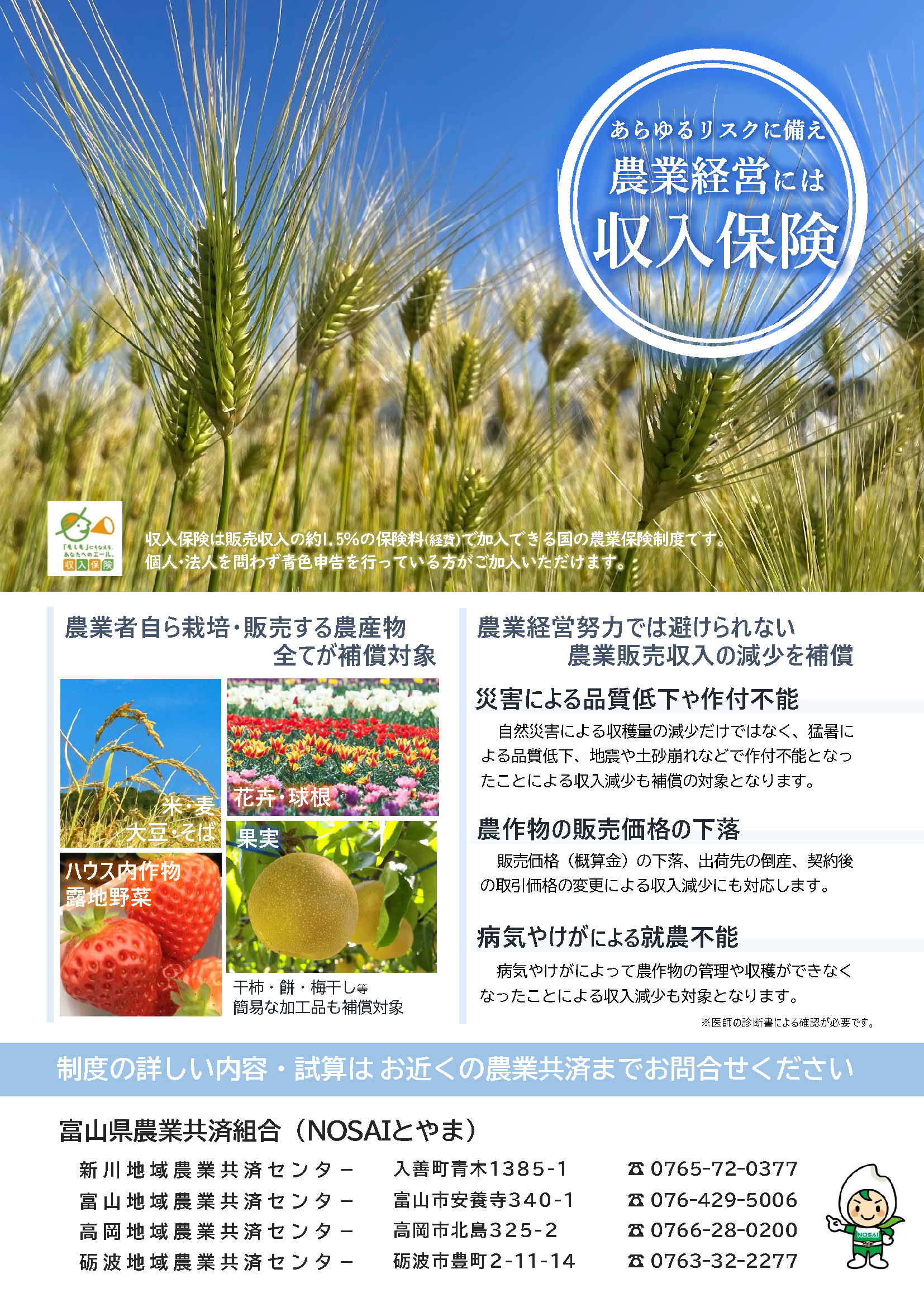 6月1日よりそば共済の加入を受け付けています。加入を希望される方や詳細を知りたい方は、お近くのNOSAIまでお問合せください。